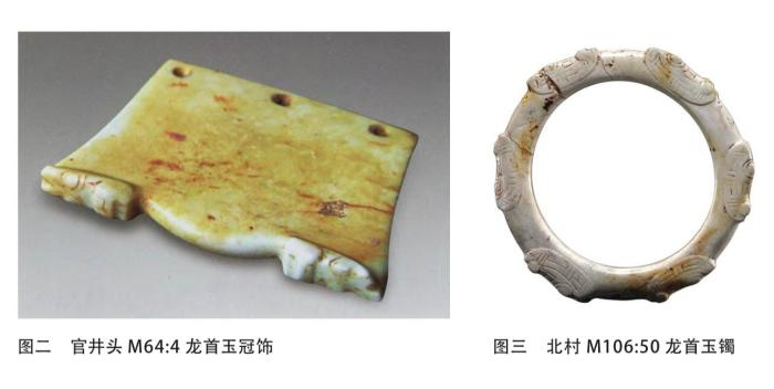 龙首玉冠饰(左)和龙首玉镯。(图/中新网)