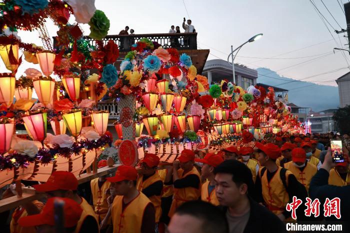 中新网福建漳平2月15日电(郭亦斌章宸睿)2月14日农历大年初五,福建省漳平市新桥镇西埔村的千名村民共同舞起长约三百米的板凳花灯龙,穿村祈福。这项富含非遗文化底蕴的活动,也吸引了上万名游客前来欣赏和体验。