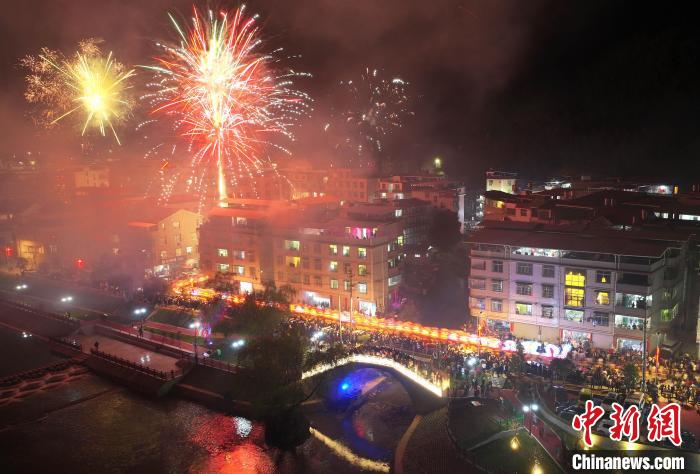 福建漳平:“非遗”板凳花灯龙 千人共舞闹新春