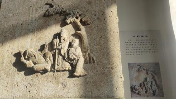 石雕《戏彩娱亲》。(图/中新网)