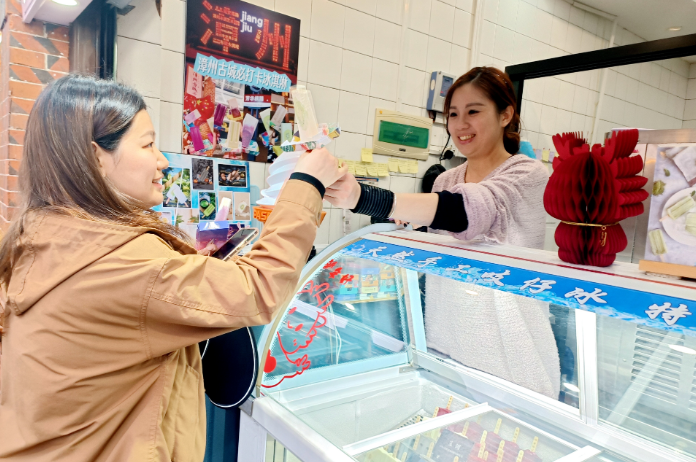 在漳州古城延安南路和芳华路交界处,“创意手工冰棒”小店也搭上漳州古城“火”出圈的东风,春节期间每天销售冰棒1000根至1300根。