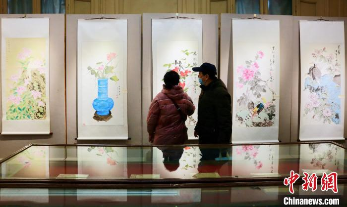 “咏絮芳华”天津女子画院第二十届国画精品展现场。(图/中新网)