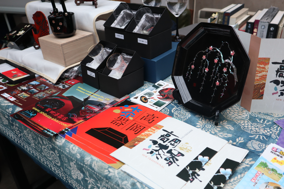 3月9日,富山县民艺文化交流座谈会活动现场展出各式各样的高冈漆器手工艺品。(图/楚一 摄)