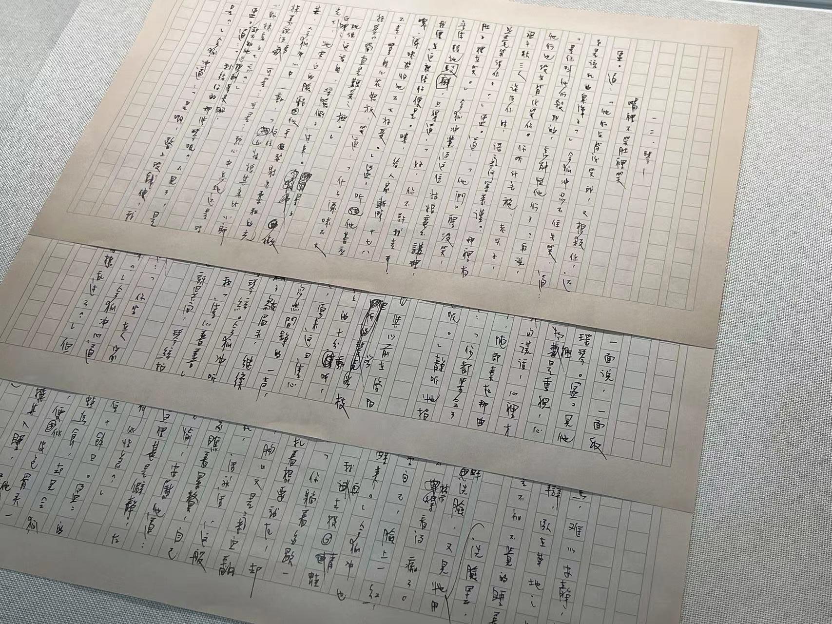 3月10日,金庸百年纪念展在浙江省海宁市开幕。图为目前所知唯一存世的《笑傲江湖》连载版手稿。(图/中新社)