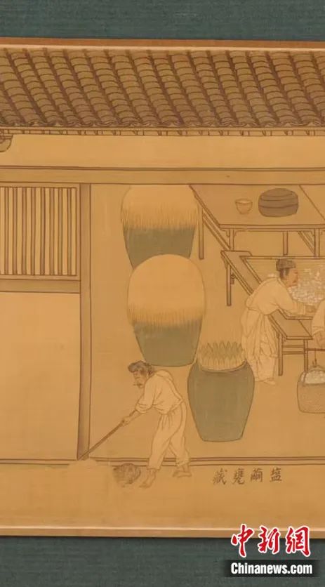 《蚕织图》“盐茧瓮藏”部分。(图/中新网)