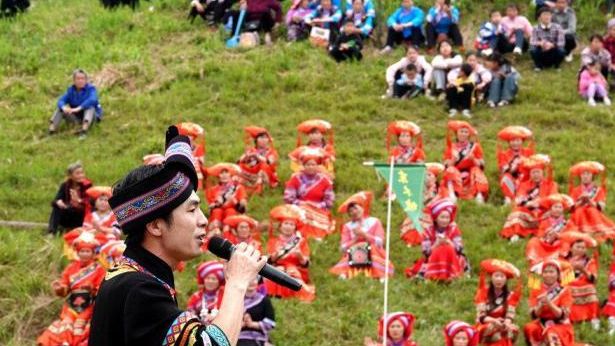 广西河池:歌王轮番上台 用壮族山歌“打擂”