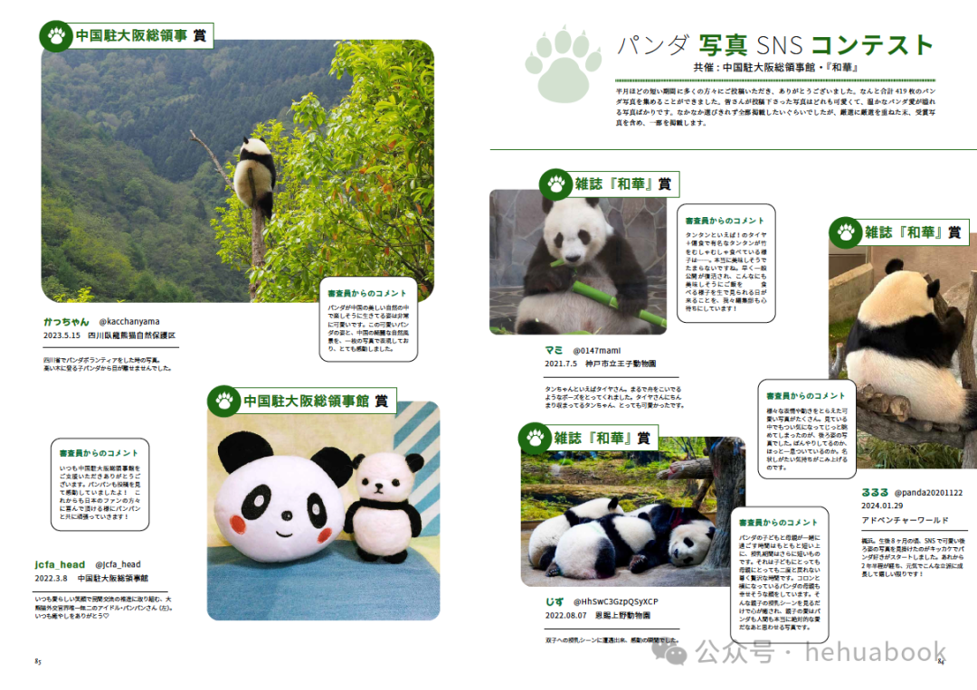 在制作本期特辑期间还与中国驻大阪总领事馆共同举办了“和华熊猫SNS摄影大赛”,尽管征集时间很短,却收到了419张投稿照片,在X(Twitter)上引发20多万人次关注,让我们切身感受到日本民众对熊猫满满的爱。杂志特别刊登了部分获奖照片。