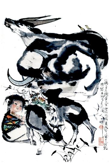 家父为适应新社会对人物画的强烈需求,去探索、去实践、去训练自己,在不长的一段时期内,他的人物画有了长足进步。这可以在他早年所画的连环画画稿中,以及大量的插图中明显地感受到。他一方面向古人学习,另一方面又向洋人讨教,在这集大成式的学习中他的体会就更深了。他从中国古代的吴道子、梁楷、牧溪、李公麟,后来的陈老莲、曾鲸、任伯年等人物画大家及许多唐、宋、元代那些没有落款的无名氏的作品里,更有他特别重视的民间艺术中去寻觅真知。