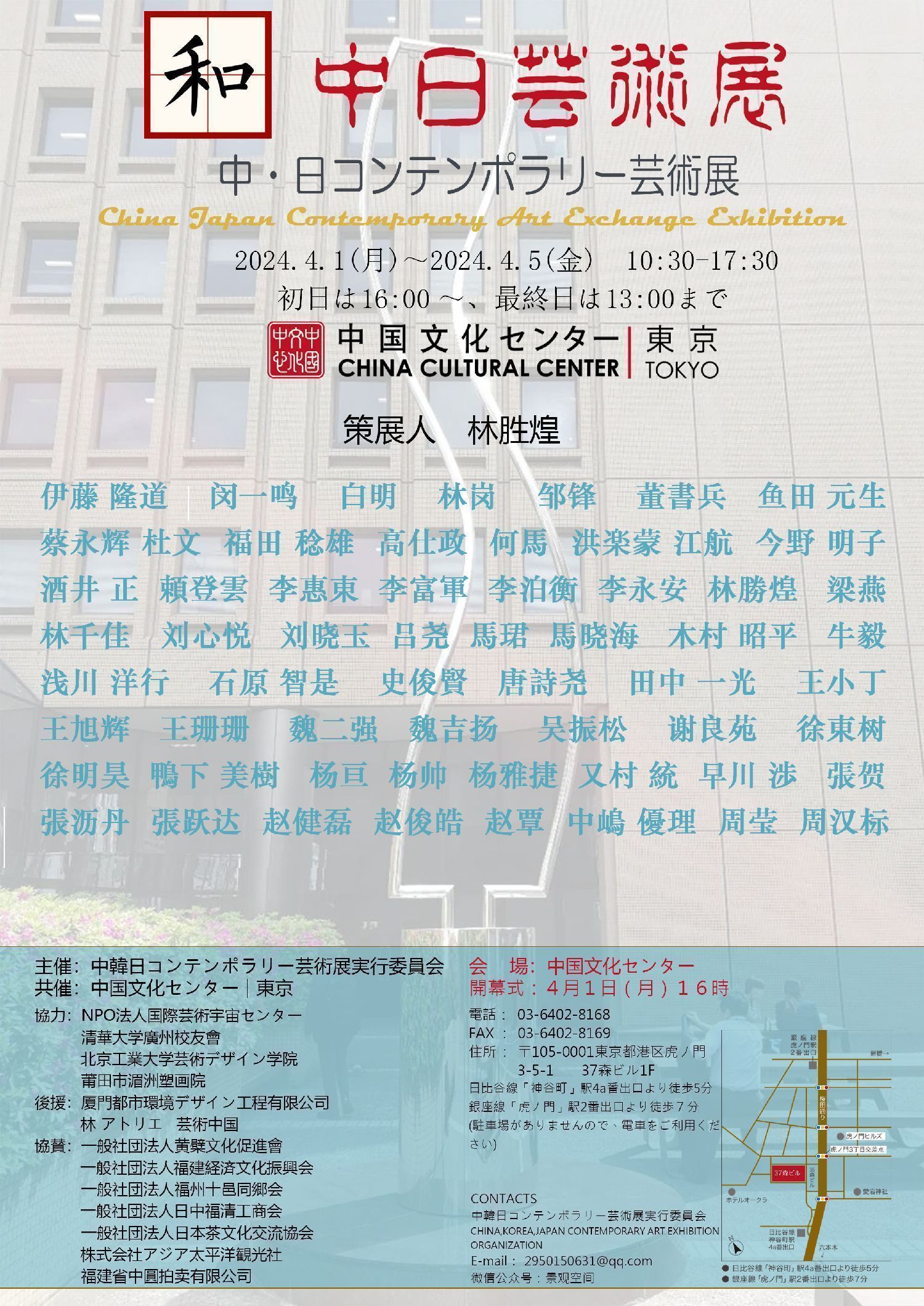 2024年4月1日下午16时30分,由东京中国文化中心和日中韩当代艺术展组委会共同主办的“和·中日艺术展”在中国文化中心开幕。