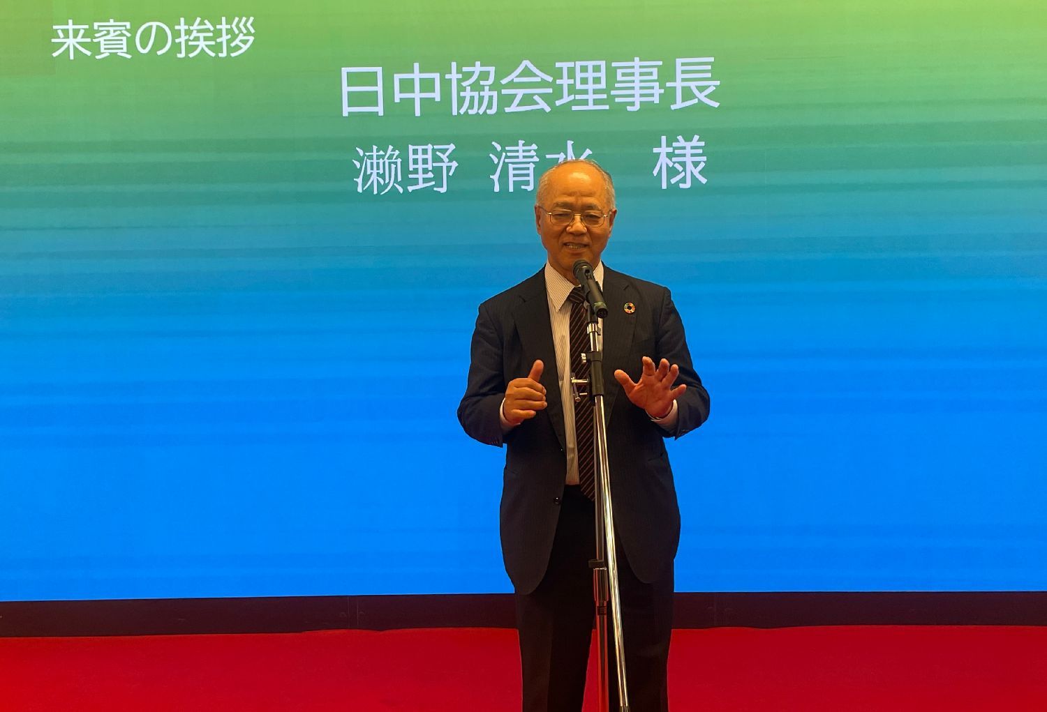日中协会理事长瀬野清水在致辞中表示,通过我们民间的丰富多彩的体育活动及多种多样的民族特色的才艺展示,进一步推动与促进全民健康运动,让两国人民通过异域文化的互鉴互赏,从而达到心与心的交融,助力国民健身、国民健康。一同携手共进、破浪前行,为中日民间友好贡献力量。