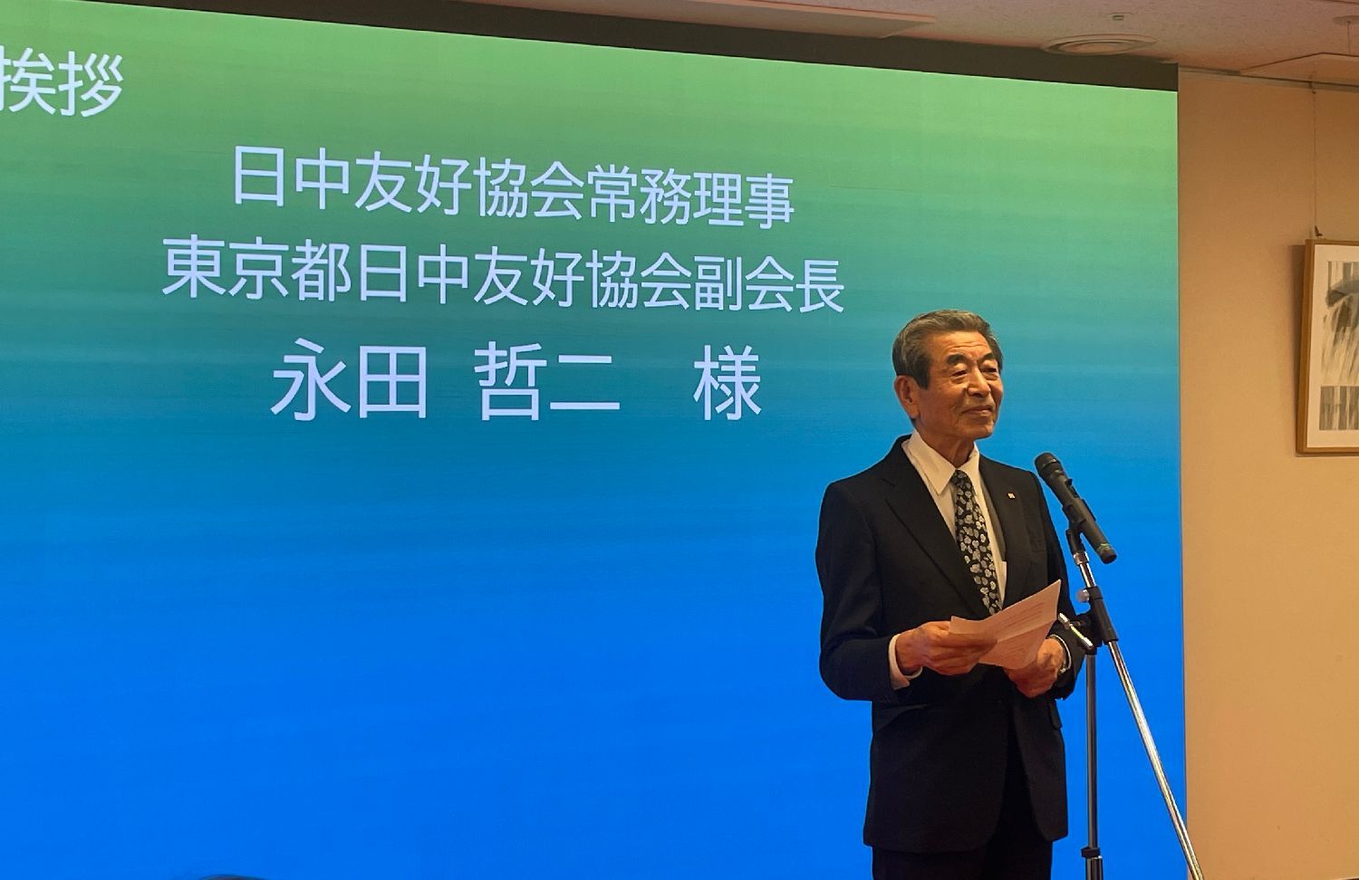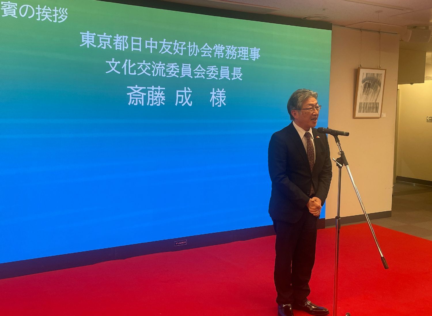 东京都日中友好协会常务理事、文化交流委员会委员长斋藤成致辞:樱花迎来了绽放的季节,通过民间友好文化交流活动,可以增进中日两国人民之间的了解和友谊,促进两国文化的交流和发展。