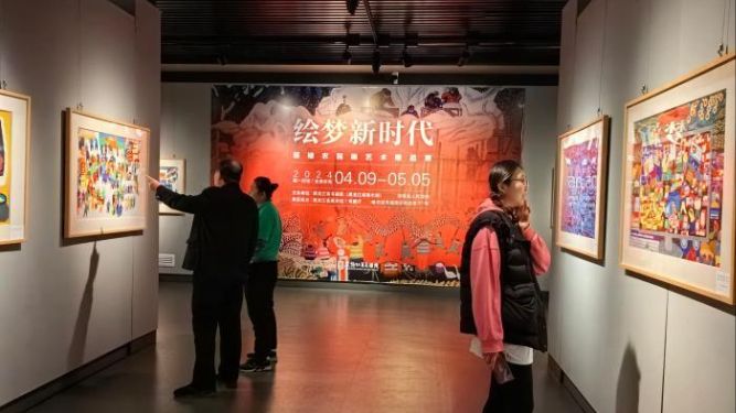 9日,以“绘梦新时代”为主题的黑龙江绥棱农民画艺术精品展开展,一幅幅充满乡村气息的画作参展,吸引八方游客参观。