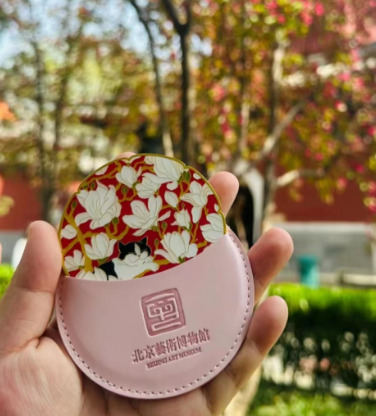 春风徐徐,位于万寿寺的北京艺术博物馆里,玉兰花在古建红墙的映衬下盛放。这番惬意的景色特写被收入一枚立体的金属“贺卡”,镂空雕刻的满树玉兰是“封面”,翻开来,红墙上有玉兰花和猫咪的金色剪影。“这其实是一枚冰箱贴,我们把博物馆里的春天画在了上面。”北京艺术博物馆文创空间“万寿邮局”的主理人李夫振细细道来。