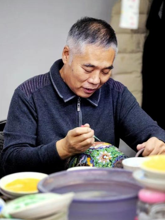 张玉安正在烧制景泰蓝沙发。(图/《北京日报》客户端)