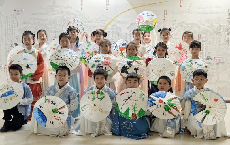 在活动结束后,不少学生自告奋勇表示愿意将自己画的油纸伞装饰在社区“书声琅琅”互动体验区,扮靓社区文化空间。社区工作人员让孩子们撑着油纸伞一起合影留念,记录下这一美好瞬间。此次活动以“油纸伞”为载体,将非遗融入百姓的生活中,让学生们亲身感受到精巧的油纸伞充满悠久的文化古韵,感受到中国传统工艺的精妙,让文化的种子在孩子们的心中生根发芽。
