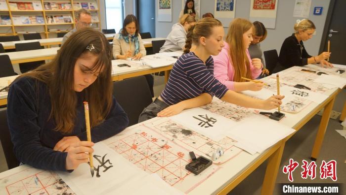 学生们练习书法。柏林中国文化中心供图
