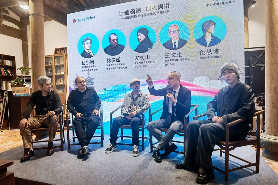 18日,福建泉州举办“潮流视野下传统文化的活态传承国潮圆桌派”活动,邀请两岸艺术时尚界人士参与对话。(图/中新社)