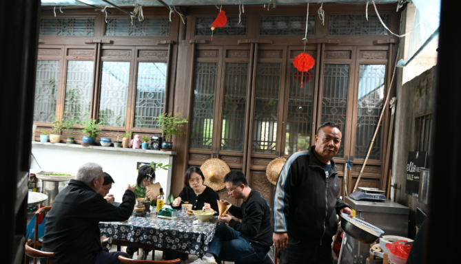 图为食客们在常州焦溪古镇一餐厅用餐。(图/中新网)