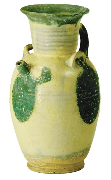 唐代青瓷绿彩斑纹执壶。(图/北京《人民日报》客户端)