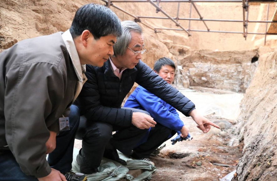 马永嬴(左一)与焦南峰(中)在考古现场。(图/成都封面新闻)