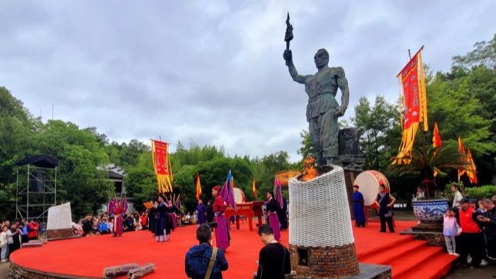 5月1日,在江西景德镇古窑民俗博览区的林荫大道上,恢宏大气的鼓乐声中,一支身着古代服饰的队伍缓缓前行,或肩扛松柴,或手捧祭品,到达童宾广场,开启祭祀窑神活动。