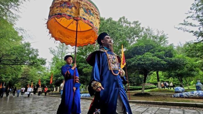 窑神童宾祭祀仪式活动中,主祭官“唐英”入场。(图/中新网)