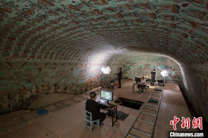 图为敦煌莫高窟第148窟壁画数字化采集现场。(资料图)敦煌研究院供图