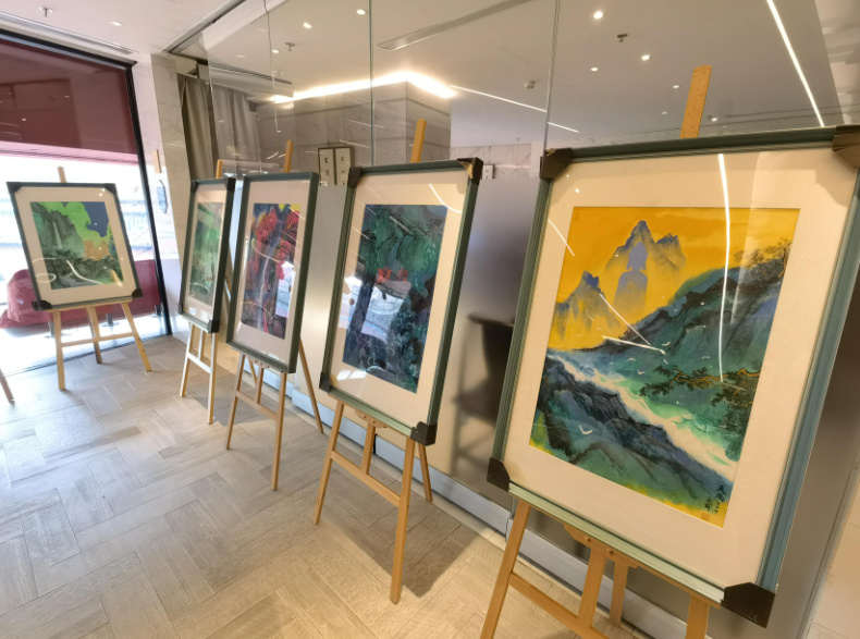 “此次展览展出的作品,总体以山水画为主,创造出未来式的中国山水是我追求的方向;与此同时,展览也呈现了我创作的一些人物画,体现出新的视觉风格。”在展览的开幕式上,权迎升介绍了自己的艺术探索心路历程。“古往今来,前人已经把山水艺术推向一个又一个高峰。这些年来,我走访了很多名山大川,看到了许多东方雄浑壮丽的山水景象。我将其与幻想世界进行了融合,用赛博朋克的色彩语言进行了创作,所以诞生了这些具有未来科技感的山水画。”