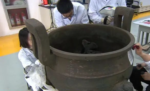图为武王墩大铜鼎清理保护现场。(图/合肥大皖新闻)