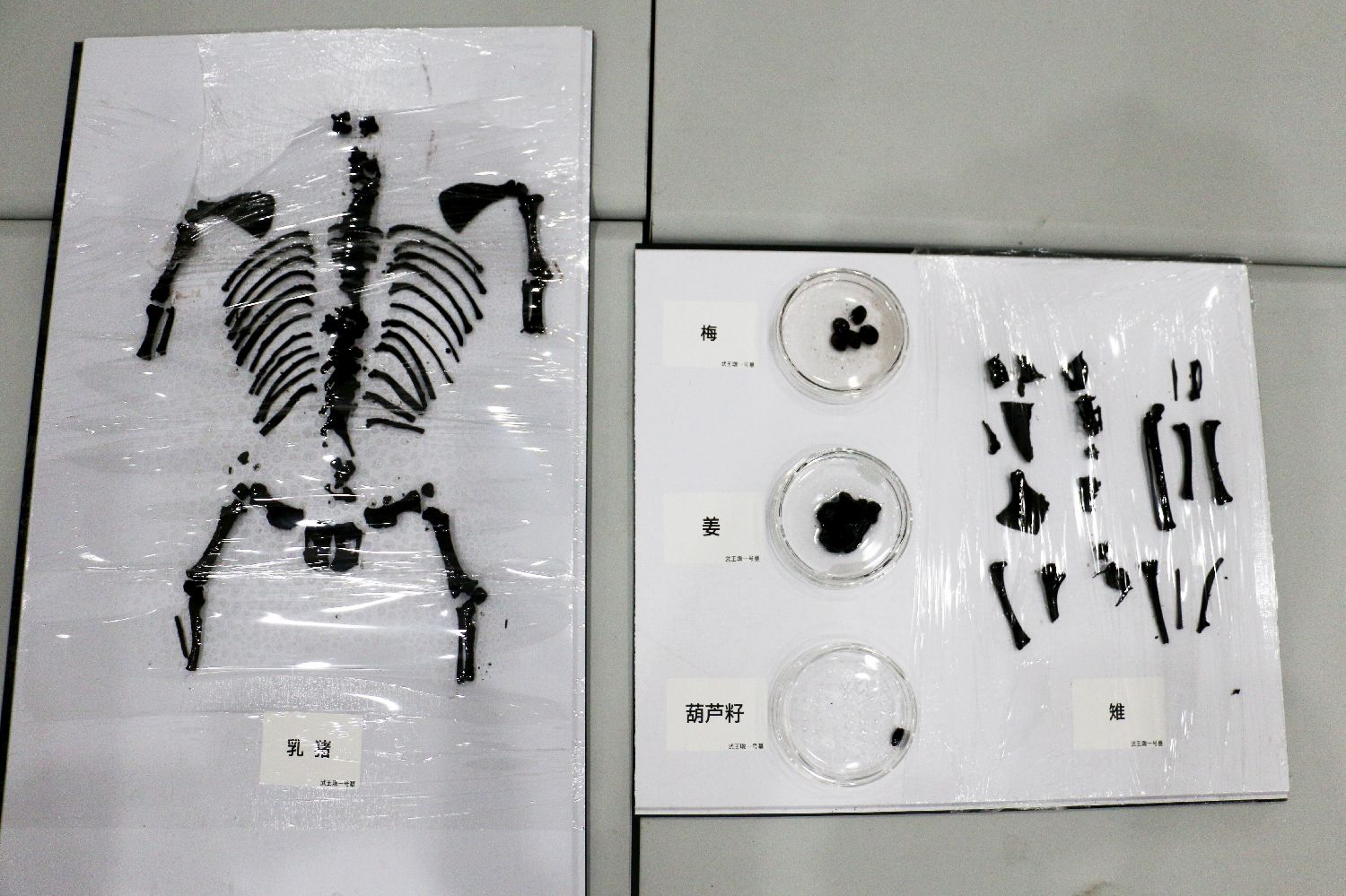 图为安徽淮南武王墩墓出土的部分动植物遗存。(图/中新社)