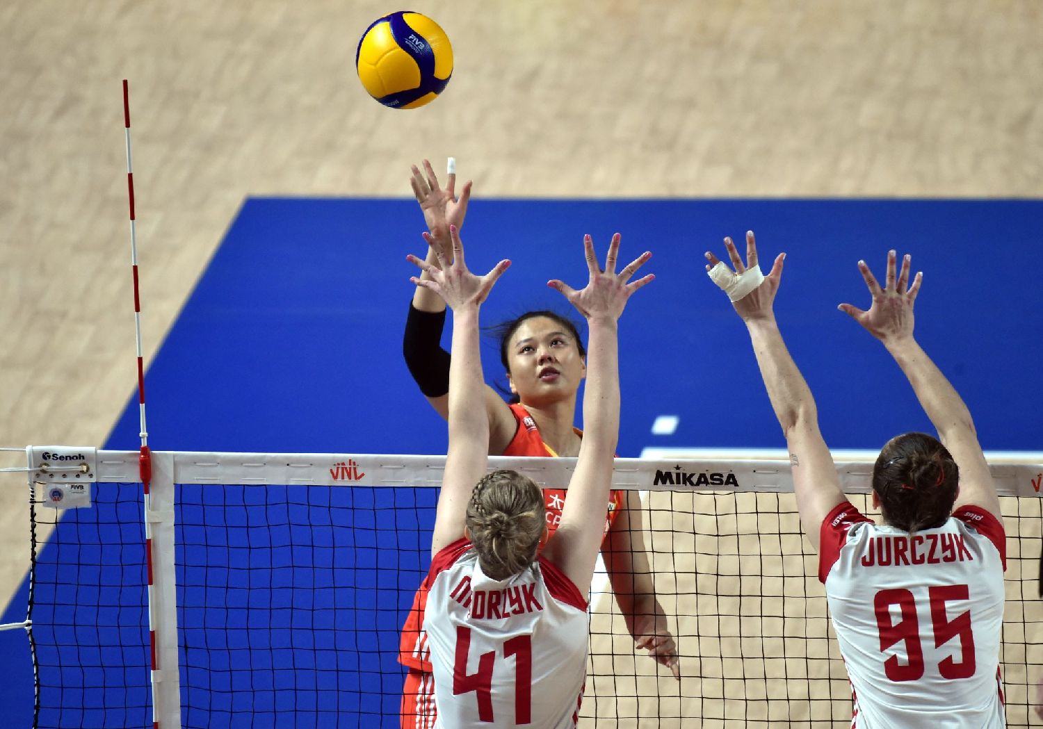 中新社报道,中国队一开场落后2:8,中段连得6分追平14:14。其间李盈莹开出“ACE”(发球得分)、吴梦洁强扣得手。末段波兰队发球失误失掉关键分,落后22:23,中国女排队长袁心玥拦网获局点,对手强攻挽救一分,但吴梦洁扣中后场助中国队25:23领先一局。