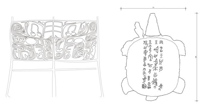 用数字化手段无损提取青铜器文物的关键信息,图左为提取的纹样线图,图右为从作册般黿提取的信息。(图/中新网)