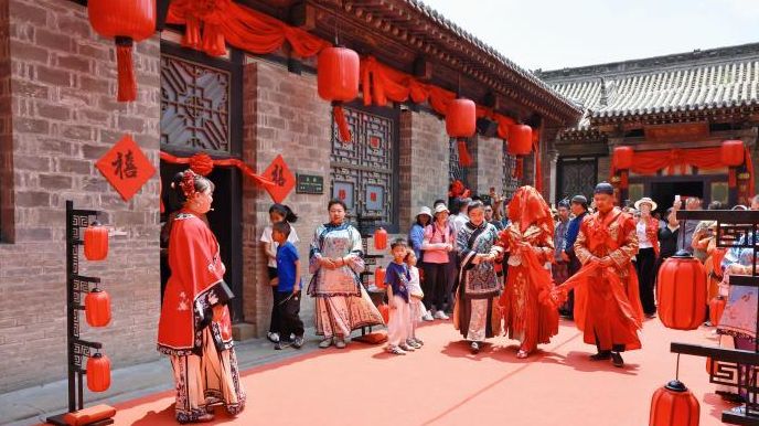 乔家大院文化园区打造了沉浸式婚俗体验,让游客能深度体验和参与其中,感受当地的婚俗文化。