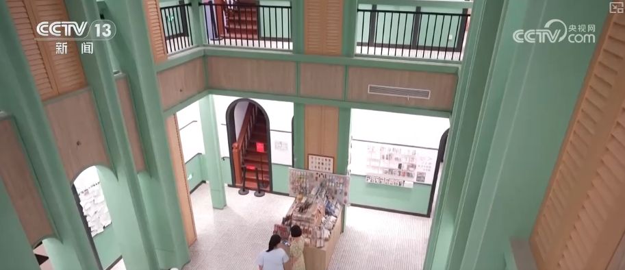 而这些历史都记载在每一栋建筑墙面的铭牌上。这个铭牌上面写着“福顺德银号旧址”,它始建于1930年,距今已经近百岁。走进去可以看到,当年的银号已经华丽转身,成为了一处精美的书阁,这里面不仅有几万册藏书,独特的建筑风格也吸引了不少游客来驻足打卡。