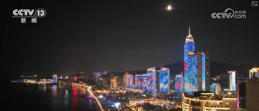 烟台市海边夜景。(图/中国央视网)