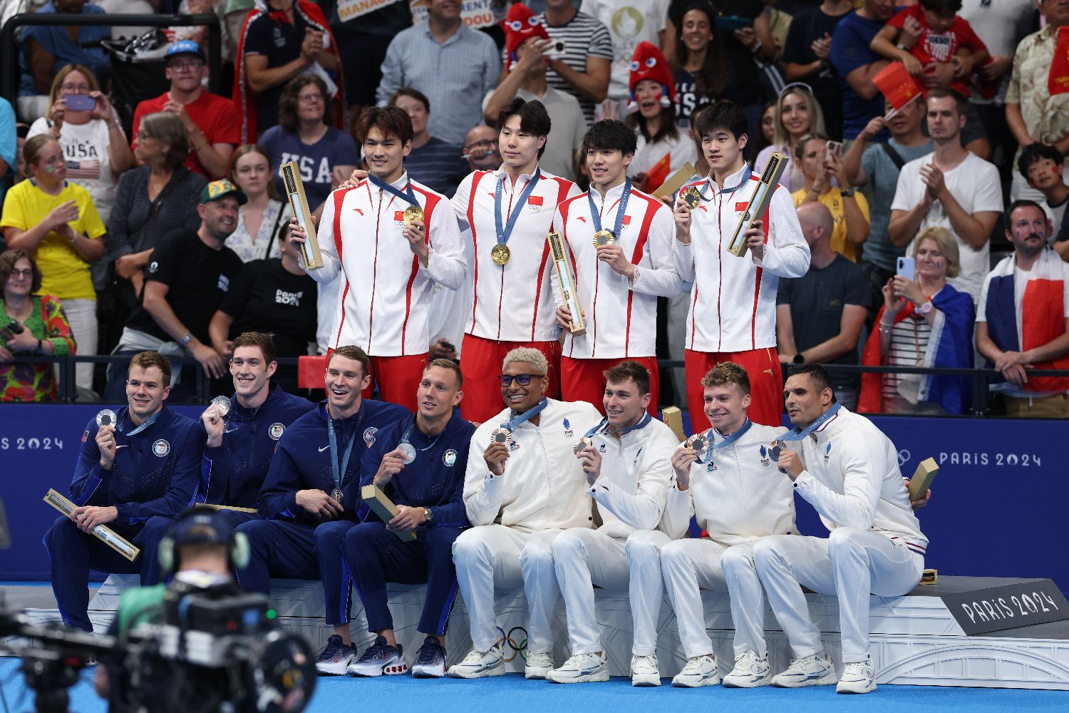 当地时间8月4日晚,由徐嘉余、覃海洋、孙佳俊、潘展乐组成的中国队创造历史,在男子4×100米混合泳接力决赛中拿下金牌,打破美国队对该项目长达40年的垄断。