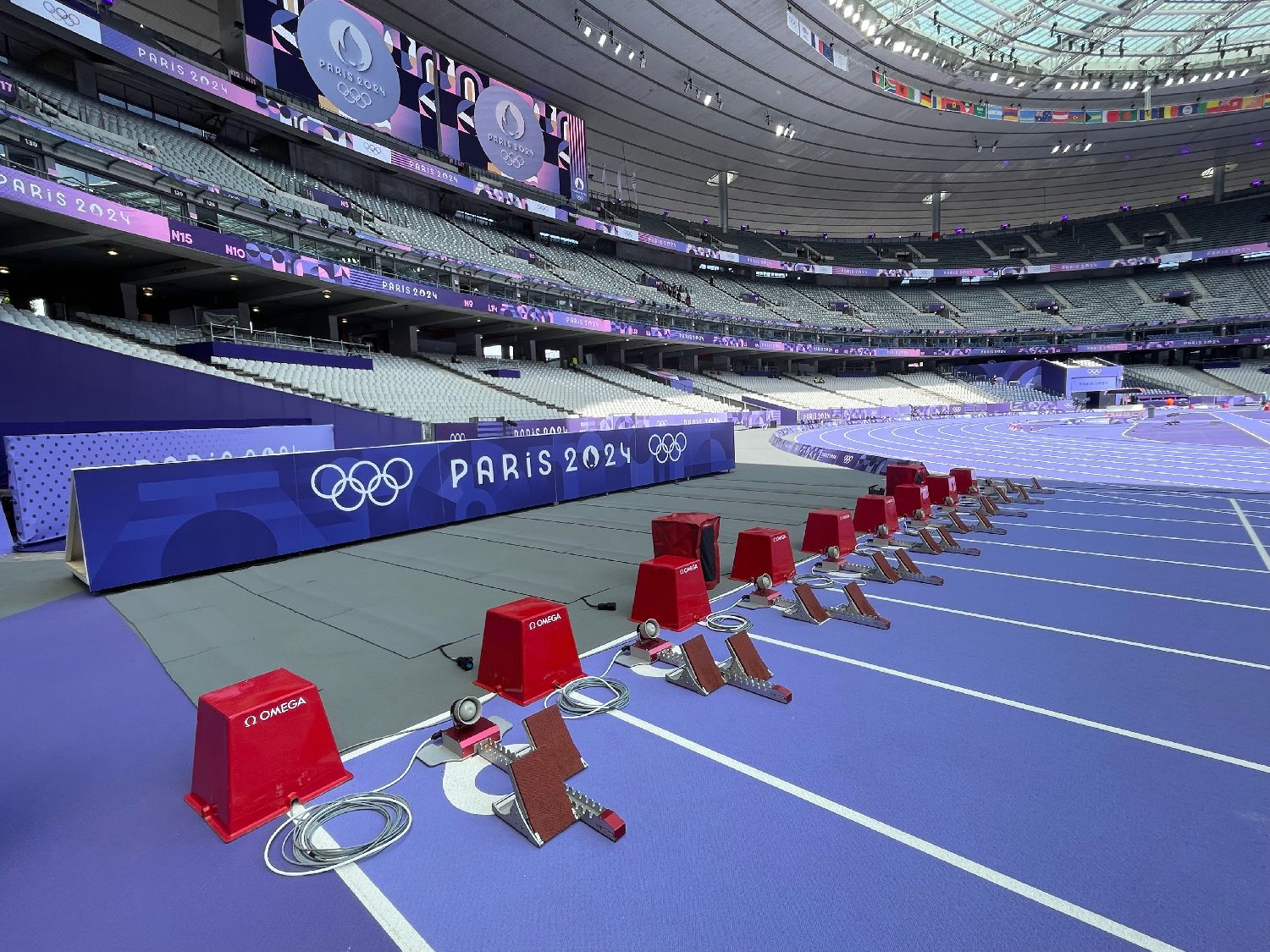 法兰西体育场百米起点的起跑器。(图/中新社)