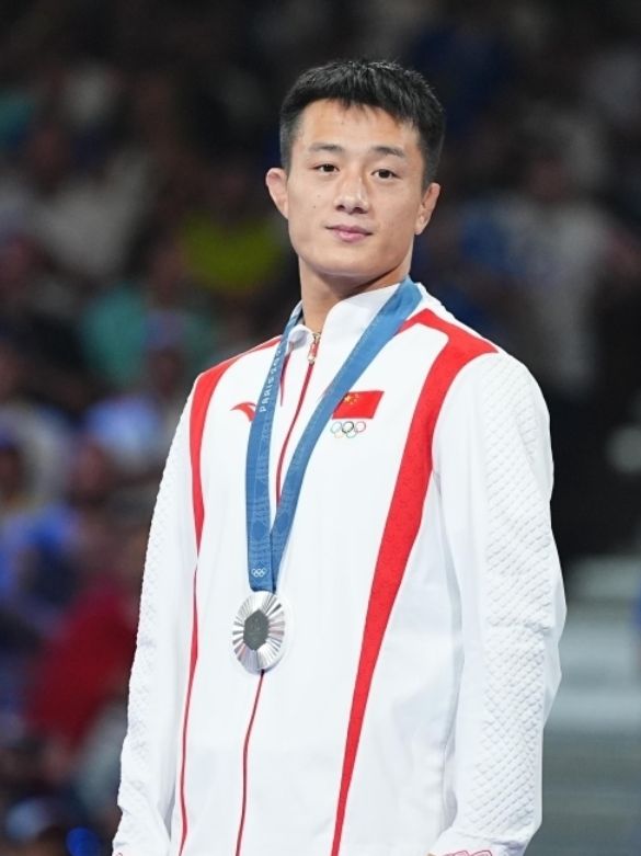 曹利国8月6日在巴黎奥运会男子古典式摔跤60公斤级决赛中获得银牌。(图/中新社)