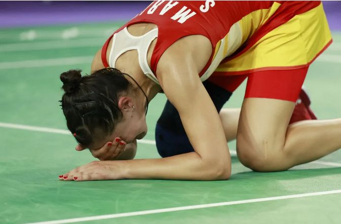 原来,何冰娇做出这一举动,是希望在颁奖仪式上对在她参加半决赛时遇到的对手——西班牙选手马林致意。此前,女单半决赛中,马林在第二局因伤退赛,而何冰娇直接进入决赛。