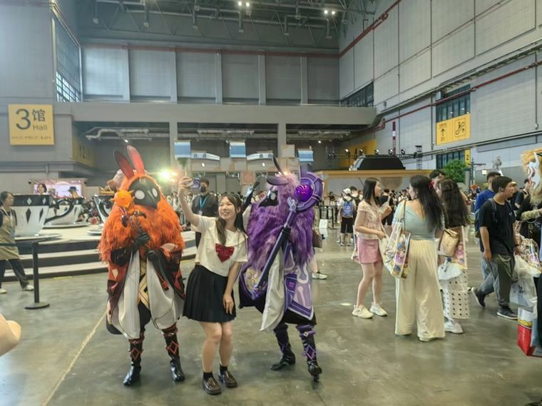 “我就是为出COS和买魈的周边特地过来的。我还准备了很多无料(免费周边),有人来集邮(合影),我就给他们发无料,挺好玩的。”“秋天”表示,自己每次来上海都是为了漫展,7月她还来参加过BW。“上海这边大漫展挺多的,我基本都会来。”“紫阳”认为,上海是中国二次元浓度最高的城市,“上海美术电影制片厂这么出名的动画厂诞生在上海,如今好多跟动漫游戏相关的企业都在上海,包括b站、米哈游等。它有悠久的传统,也有氛围浓厚的当下。”