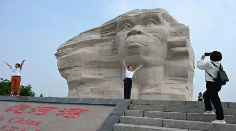 游客在泥河湾国家考古遗址公园拍照留影。(图/石家庄《河北日报》)