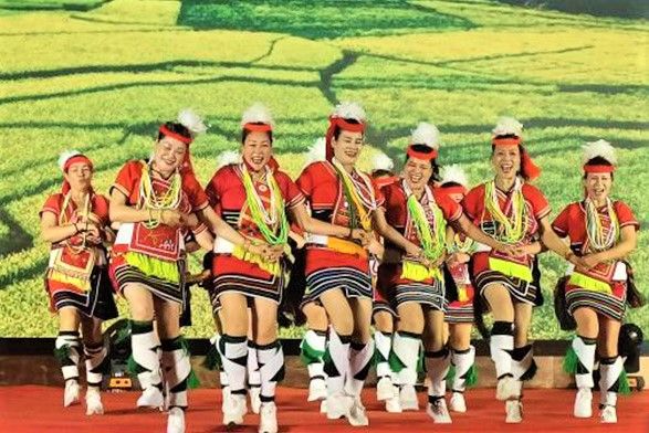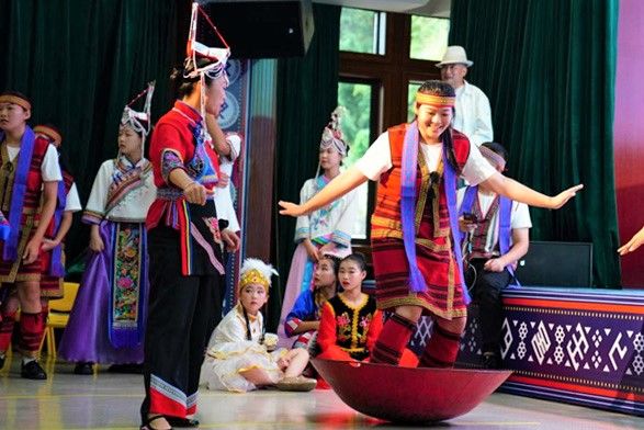 图为在福建漳州东山县,“台盟中央两岸融合发展交流营漳州分营暨第二届两岸少数民族乡土文化研习营”开营现场台湾少数民族舞蹈表演。(中新社)