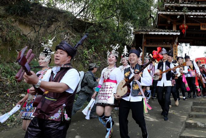 3月11日,广西三江侗族自治县梅林乡,“二月二”侗族大歌节上的民俗巡游活动。(图/中新社)