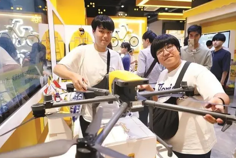 令日本学生惊叹的是,这架看起来不算小的美团无人机自重仅7千克。在杨浦区的美团综合指挥中心,两名日本女生轻松地抬起了用于展示的无人机:“哦!特别轻!比想象中要轻得多!”感受科技与中国人日常生活的完美结合,带给日本学生不仅是震撼,还有对未来的无限遐想。