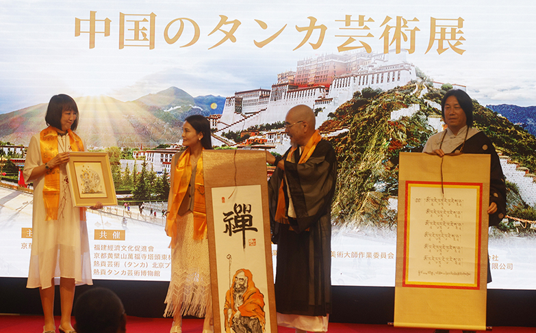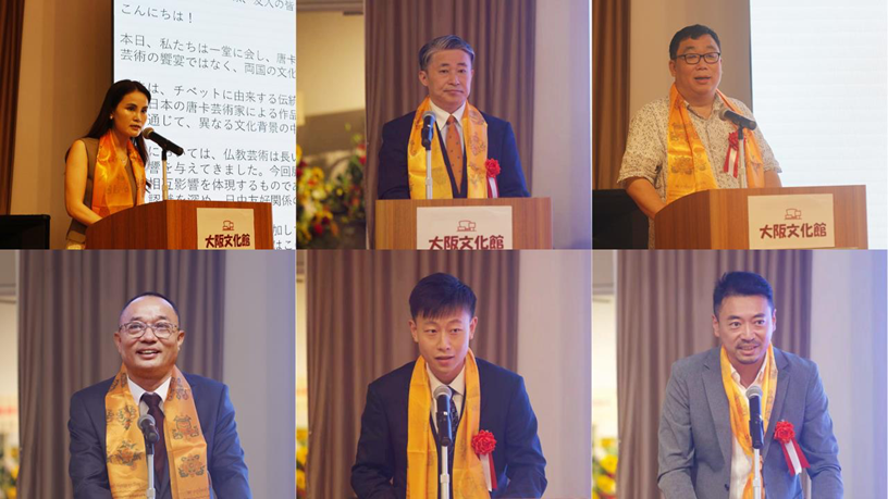 开幕式上,中国驻大阪总领事薛剑、京华文化交流协会株式会社社长何梅花、日本大阪文化会馆理事长张永胜、福建经济文化促进会会长陈登才、中国轻工业联合会工艺美术大师工作委员会代表李臻出席并致辞。此外,中国驻大阪总领馆聂瑞麟参事、周炼领事、大阪华商会会长林传龙、福建同乡会会长方静、中日友好协会大阪府联合会理事长松尾丰等嘉宾也出席开幕式,共同见证这一文化盛会。中国代表艺术家仁青才让和日本代表艺术家内藤香林、山川王芳向本次活动的主办方赠送了作品。开幕式由日本华韵文化艺术协会会长刘伟主持。