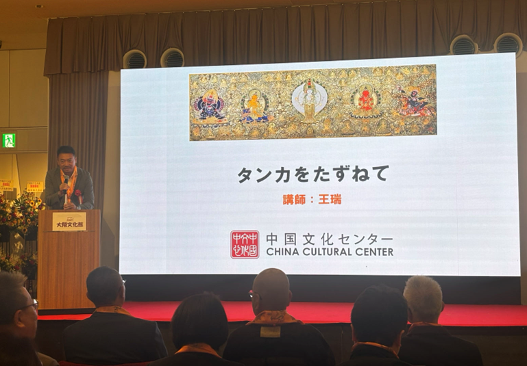 薛剑总领事在致辞中介绍了大阪总领馆今年推出的“看中国,游中国”系列活动,诚挚邀请日本朋友到中国、到藏区亲身感受包括唐卡等艺术文化在内的中华民族文化独特的韵味和风采。也希望更多的中华优秀传统文化能够积极走进日本,吸引更多的日本朋友认识、了解中国。他表示,总领馆愿为两国文化交流牵线搭桥,让中日两国民间交流更广泛、更热络、更丰富多彩,结出更多硕果。