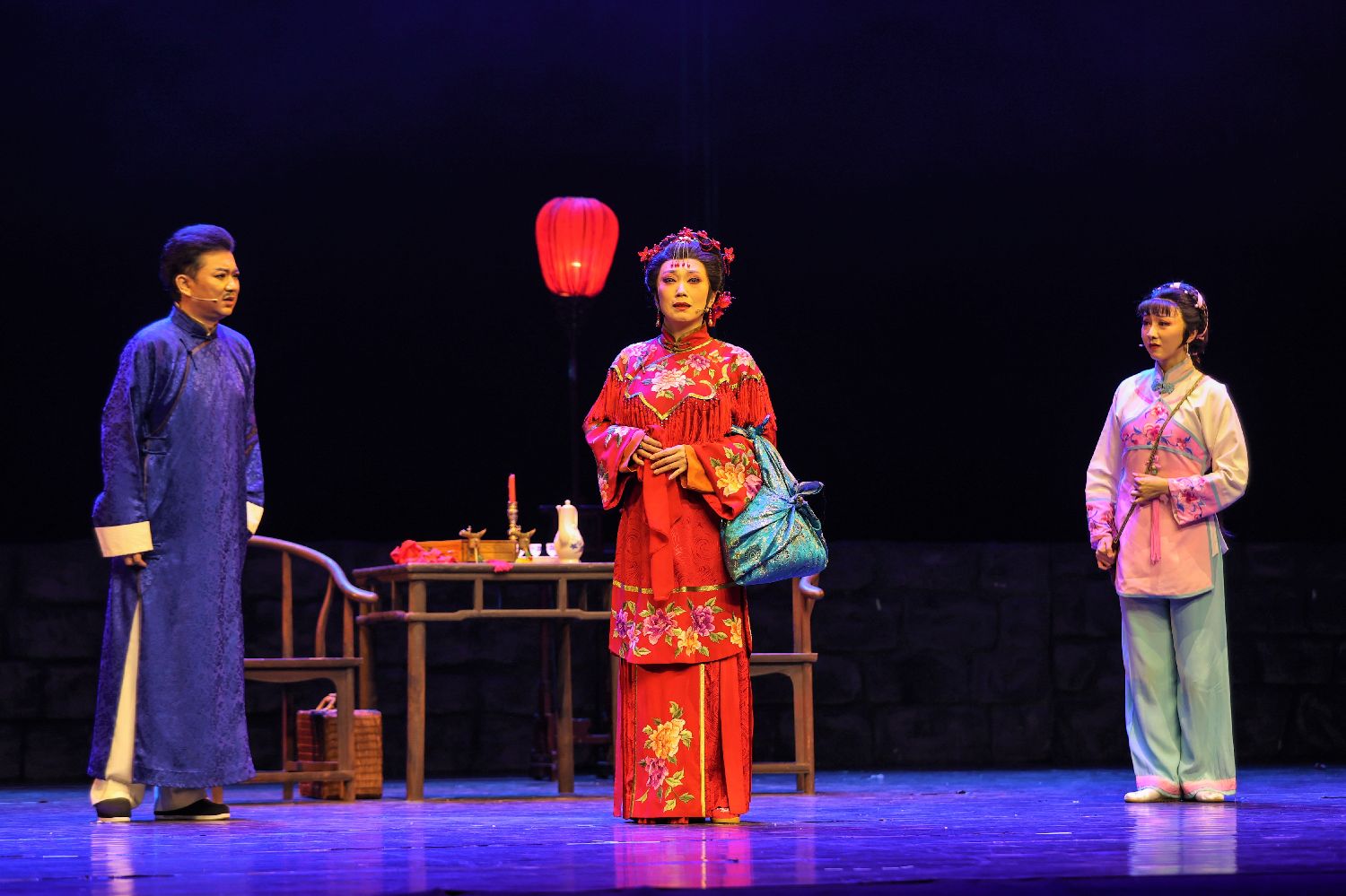 图为9日晚,演员表演贵州花灯戏《月照枫林渡》。(中新社)