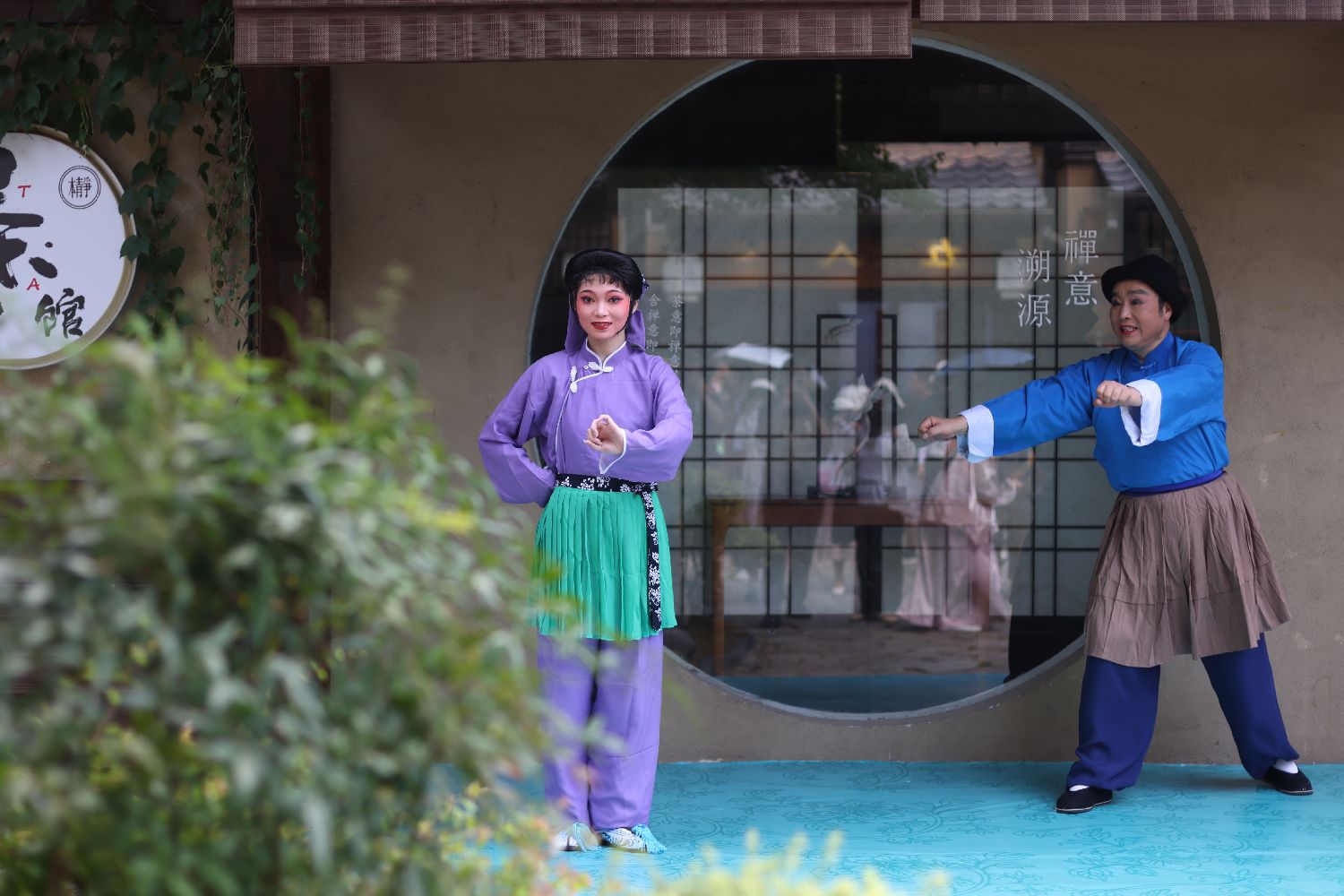 图为7日,江苏无锡,“拈花有戏·无界”拈花湾第二届戏曲生活季在无锡拈花湾启幕,演员正在表演戏曲节目。(中新社)