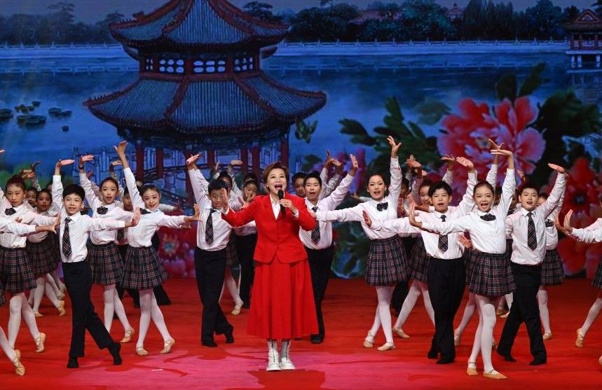 图为7日,致敬与起航——北京市庆祝第40个教师节主题汇演在首都师范大学举行,小香玉演唱戏曲《花木兰》选段。(新华社)