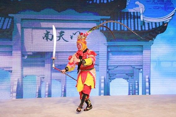 图为9日,“爱达邮轮秋冬航季暨豫剧文化出海产品发布会”在上海豫园“海上梨园”小剧场举行,演员在发布会现场装扮成闻名海内外的中国著名神话角色孙悟空表演。(大河网)